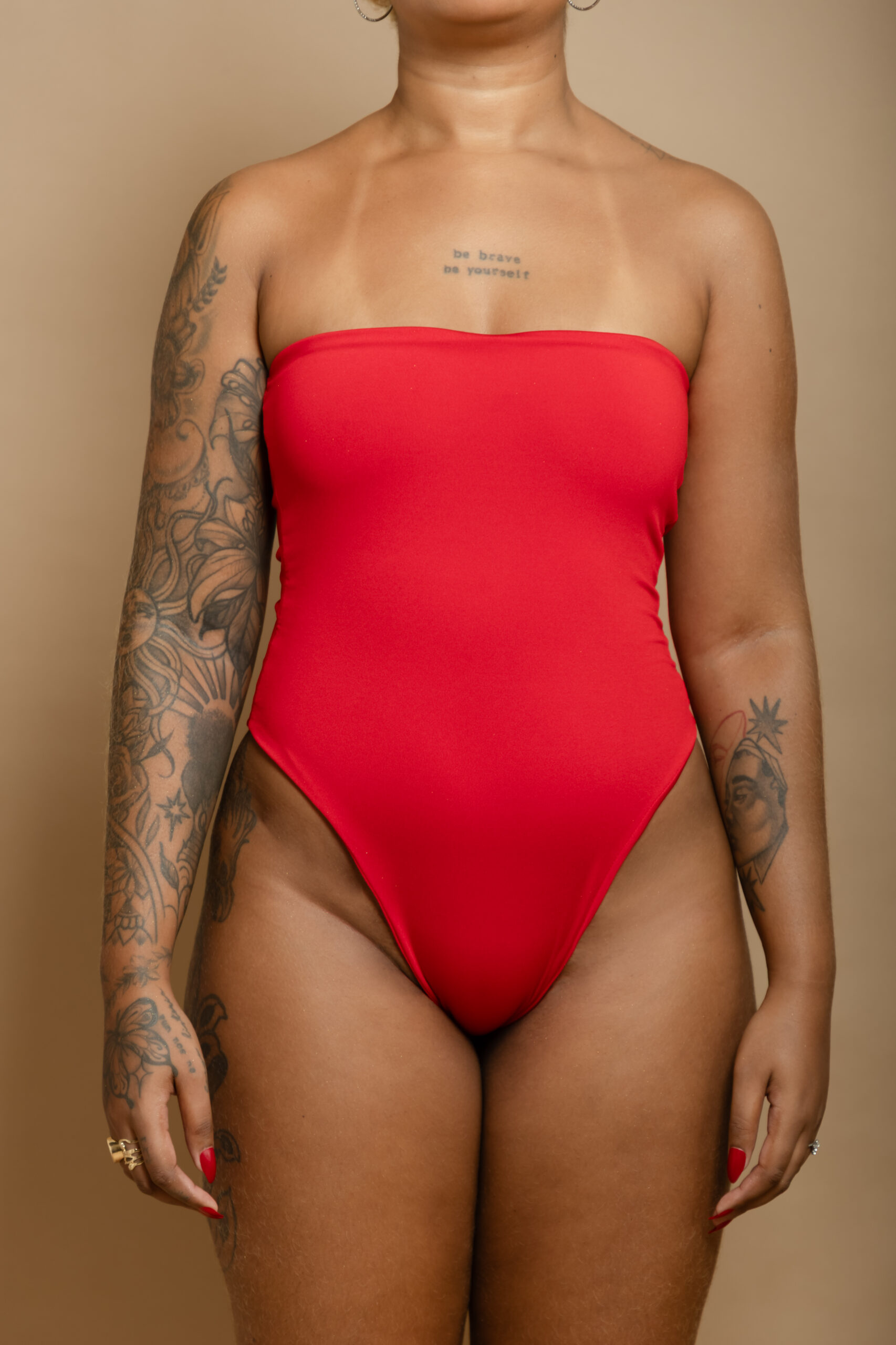 Minimalista e potente. Valoriza a silhueta com um caimento ajustado ao corpo, destacando colo e postura. Em tecido tecnológico com proteção UV, pensado para unir beleza e performance.
