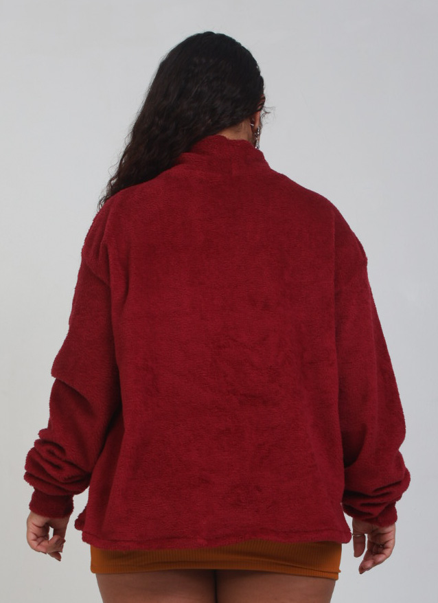 Confeccionado em fleece liso de alta qualidade com toque de pelúcia, este suéter oferece maciez extrema, aquecimento e conforto prolongado. O modelo possui caimento oversized, proporcionando liberdade de movimento e um visual moderno e descontraído.