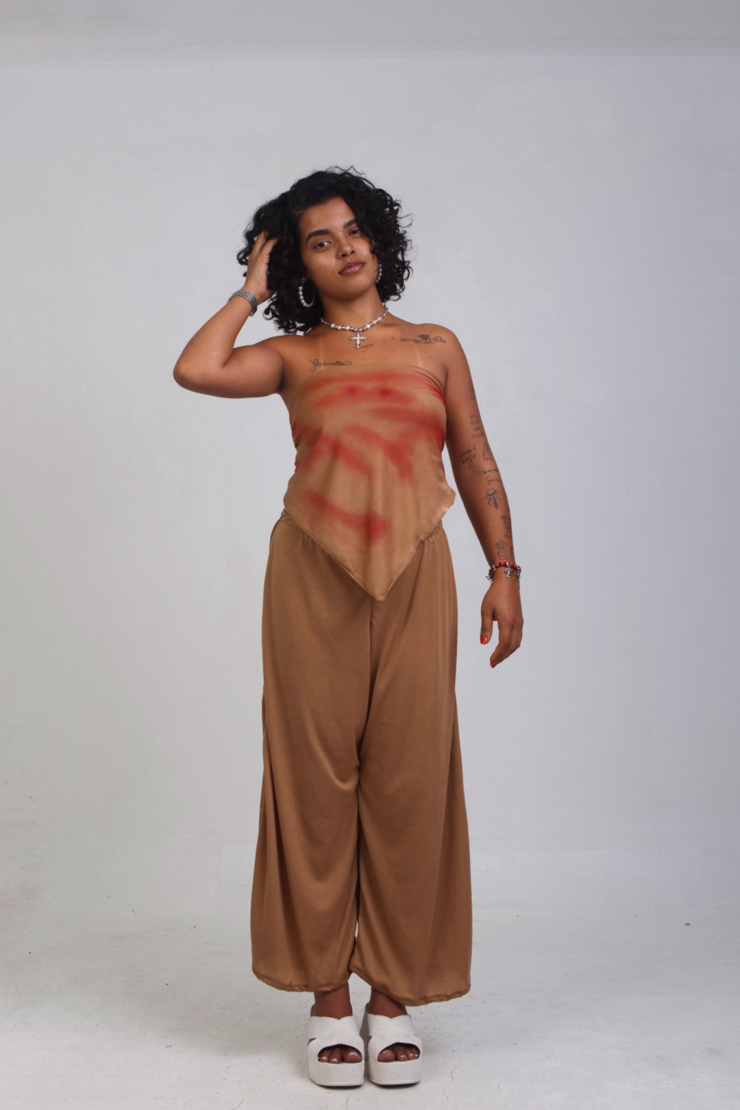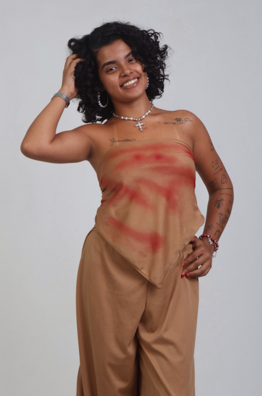 Estilo: conjunto descontraído e versátil, que une conforto da helanca com o toque criativo da customização manual. Pode ser usado em produções casuais, urbanas e estilosas, garantindo personalidade ao look.